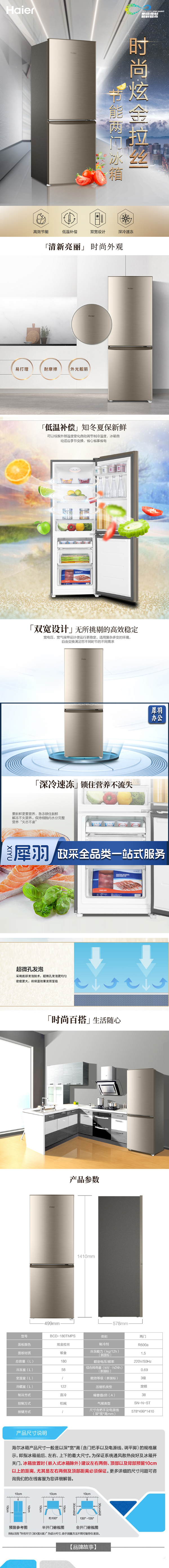 海尔(Haier)180升双门冰箱 家用节能直冷小型冰箱 宿舍租房小巧不占地 BCD-180TMPS 金色