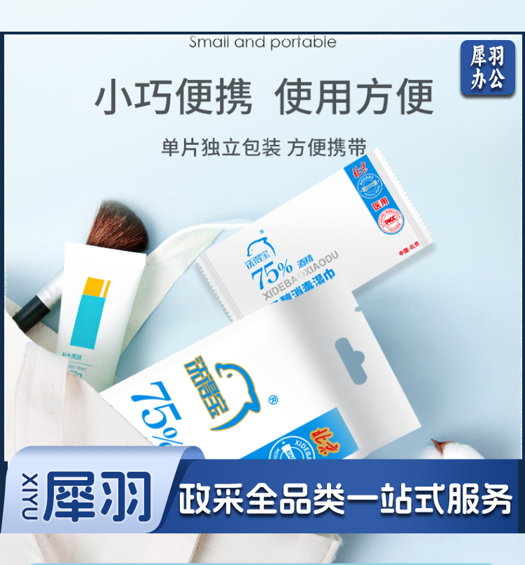 洗得宝 75%酒精湿巾 一次性消毒酒精棉片大号 单片独立包装 免洗洗手消毒液湿巾 10片