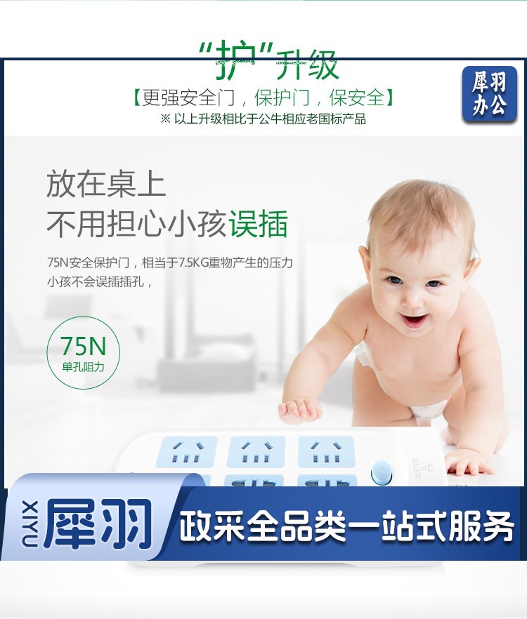 公牛 GN-603 1.8米 接线板 移动插排插座