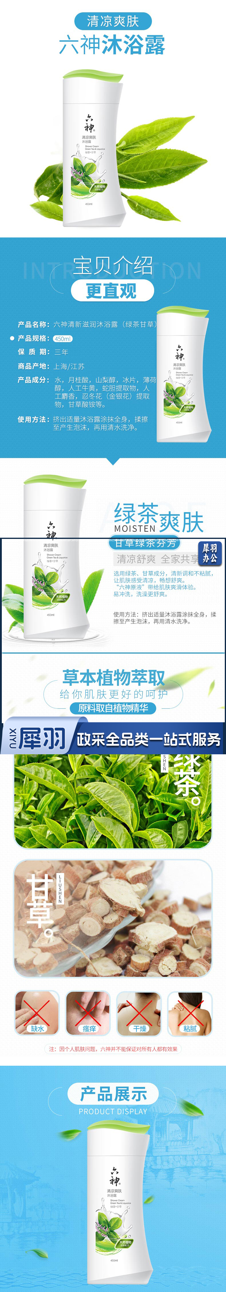 六神清凉爽肤沐浴露 450ml 绿茶+甘草