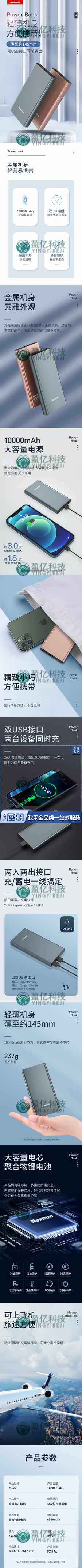 纽曼 (Newmine )移动电源10000毫安时双USB输出Type-C输入金属充电宝M106