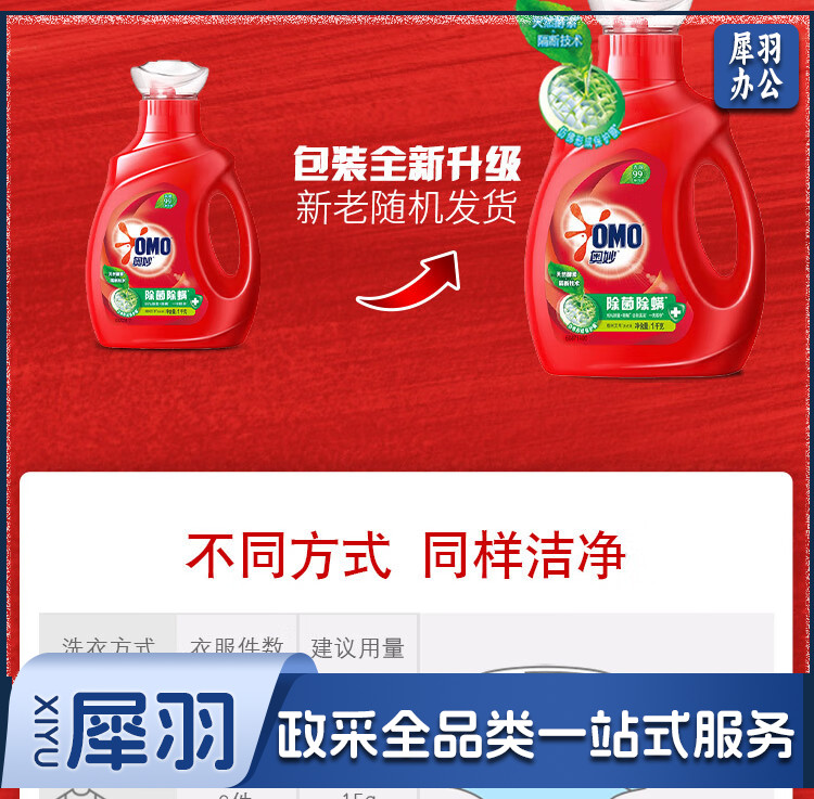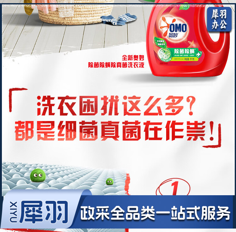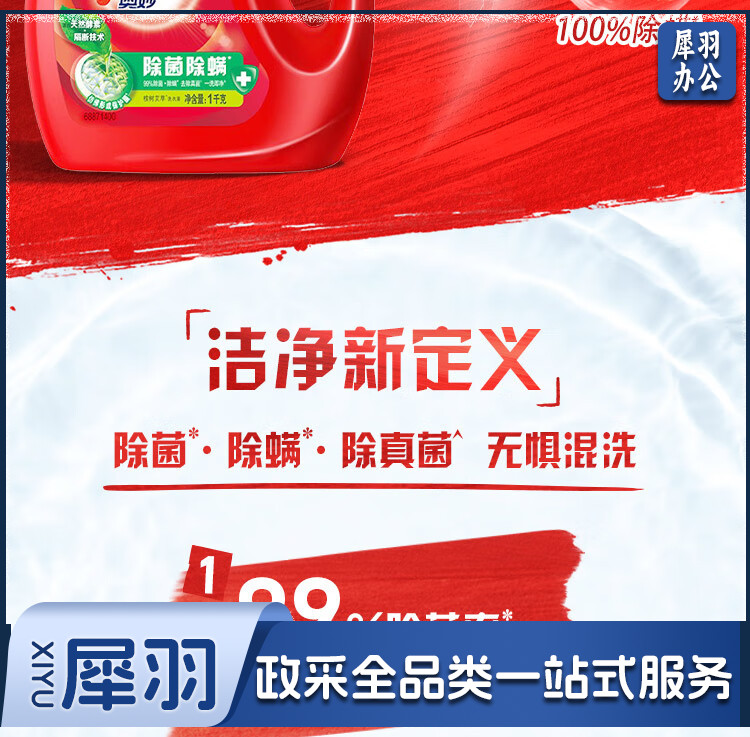 奥妙 除菌除螨洗衣液 1kg 浓缩天然酵素 持久留香 家庭必备(新老包装 随机发货)