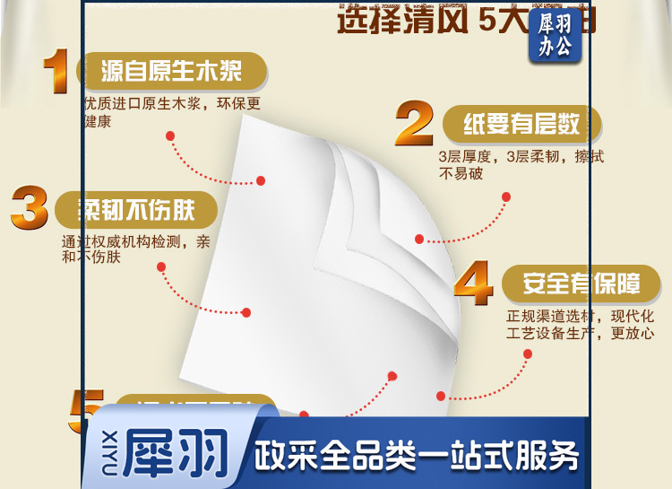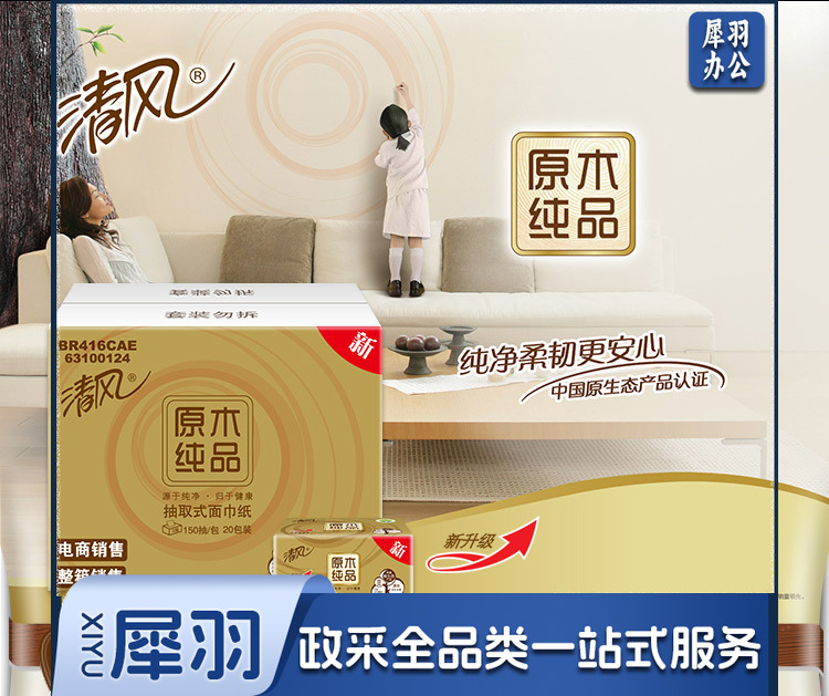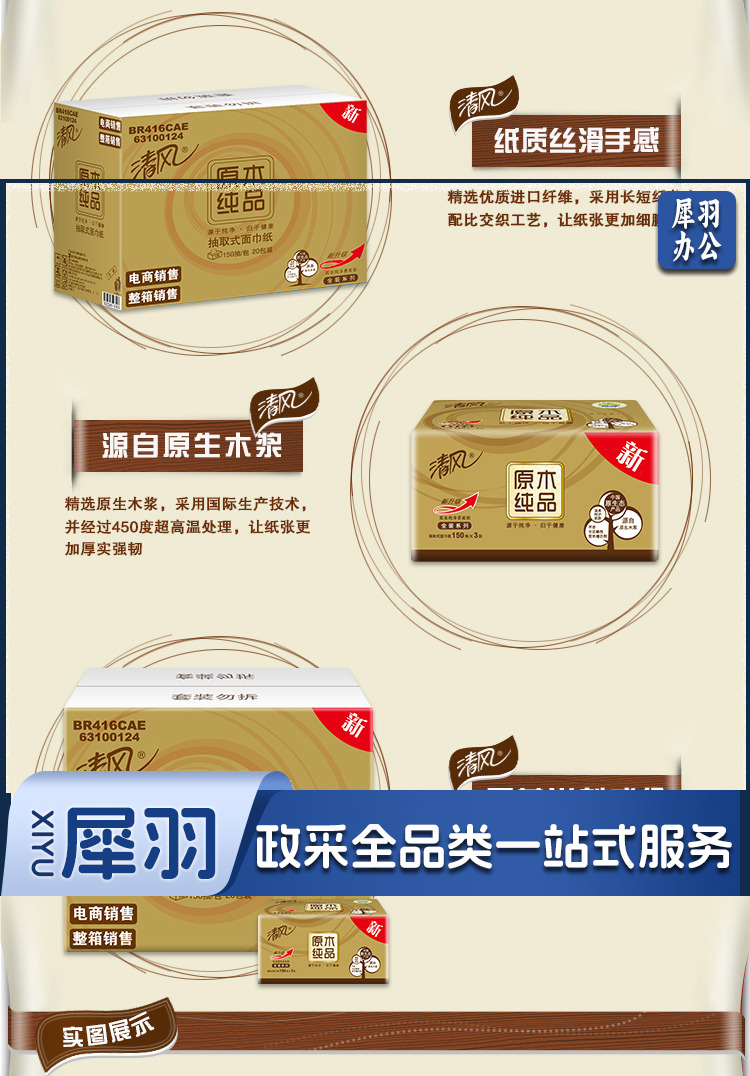 清风(APP)BR36MJ1金装原木150抽3层 餐巾纸 3包/提