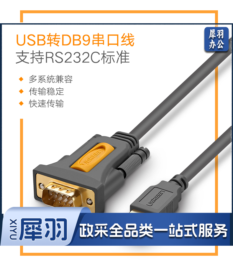 绿联USB转RS232串口连接转换线 USB转DB9针转接线支持考勤机收银机标签打印机com口调试线 1.5米