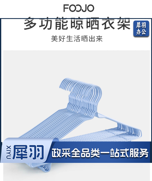 富居(FOOJO)衣架 浸塑无痕晾衣架衣服架成人儿童衣架子衣服撑子20只装蓝色带钩