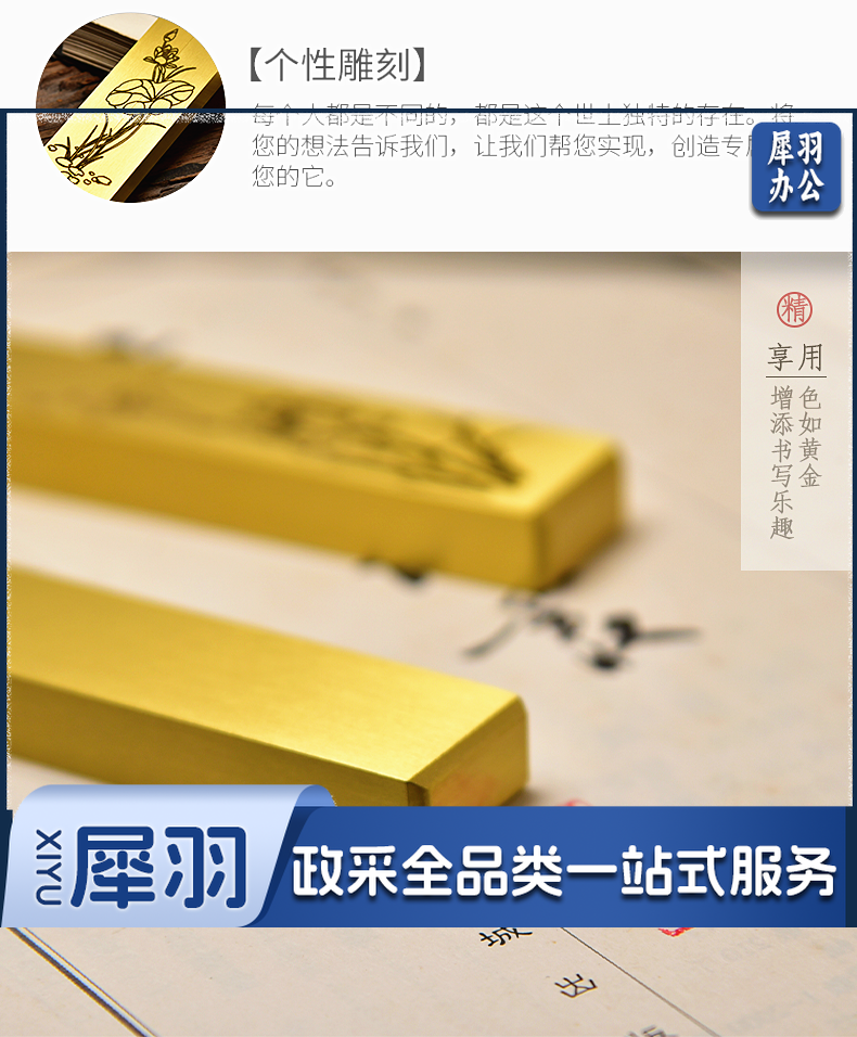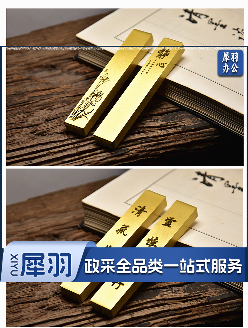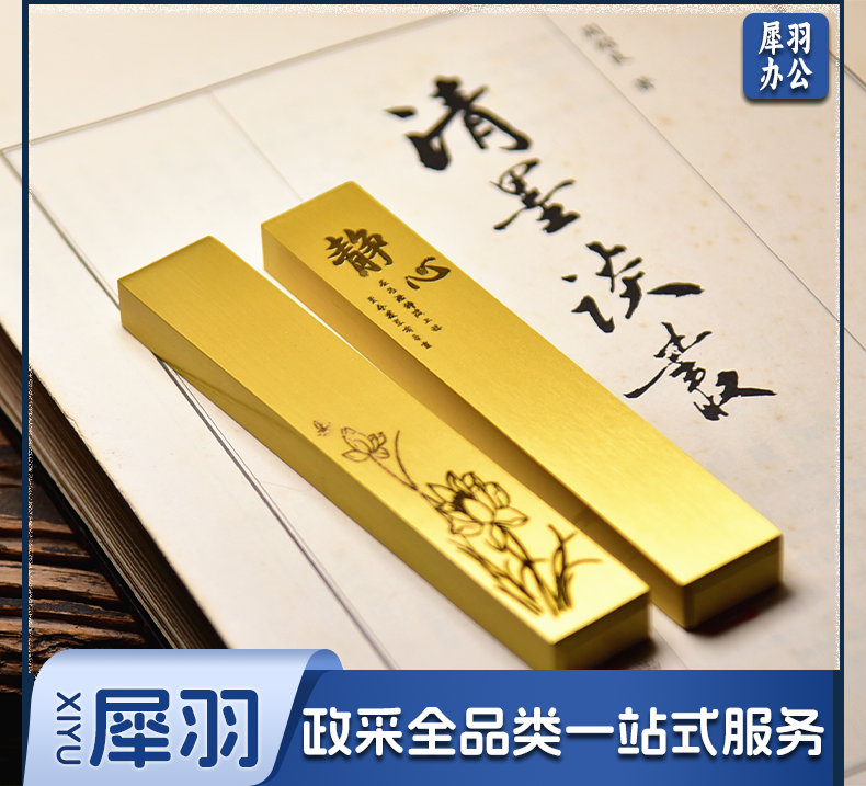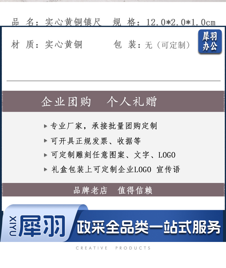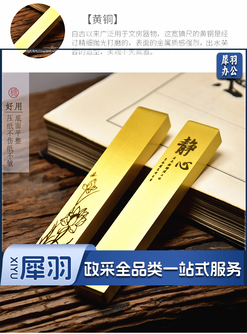 中国风黄铜镇纸镇尺清仓实心黄铜创意书法学生金属简约小文房书法镇尺一对装定制个性黄铜镇尺文房四宝礼品