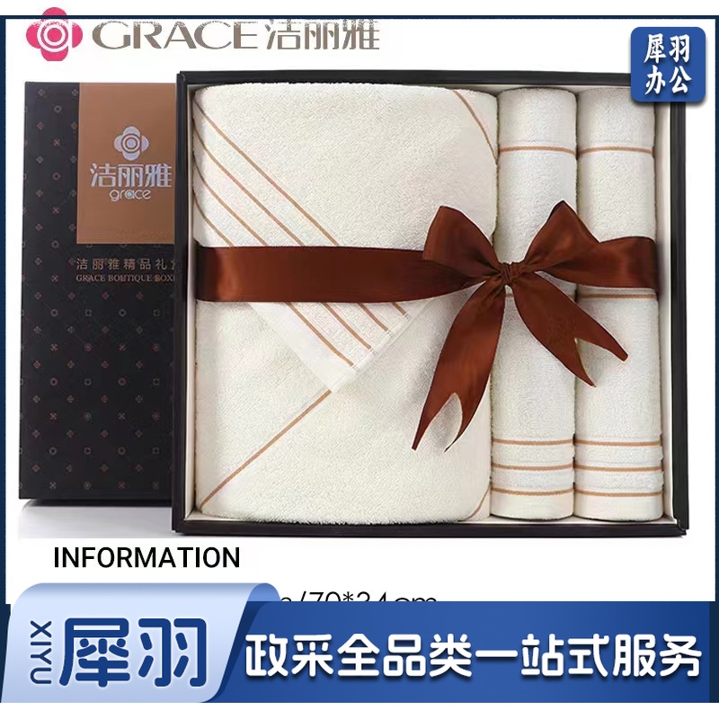 洁丽雅毛巾浴巾三件套 纯棉加厚成人男女礼盒套装