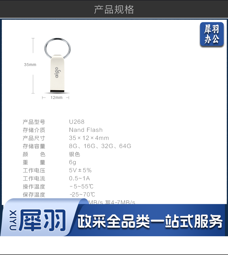 爱国者(aigo)8GB USB2.0 U盘 U268迷你款 银色 金属车载U盘