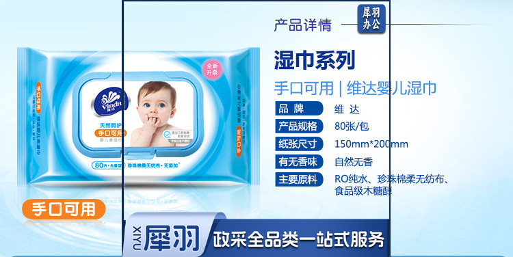 维达(Vinda)婴儿湿巾VW2004手口湿纸巾80片/包 抽取式湿纸巾 5包