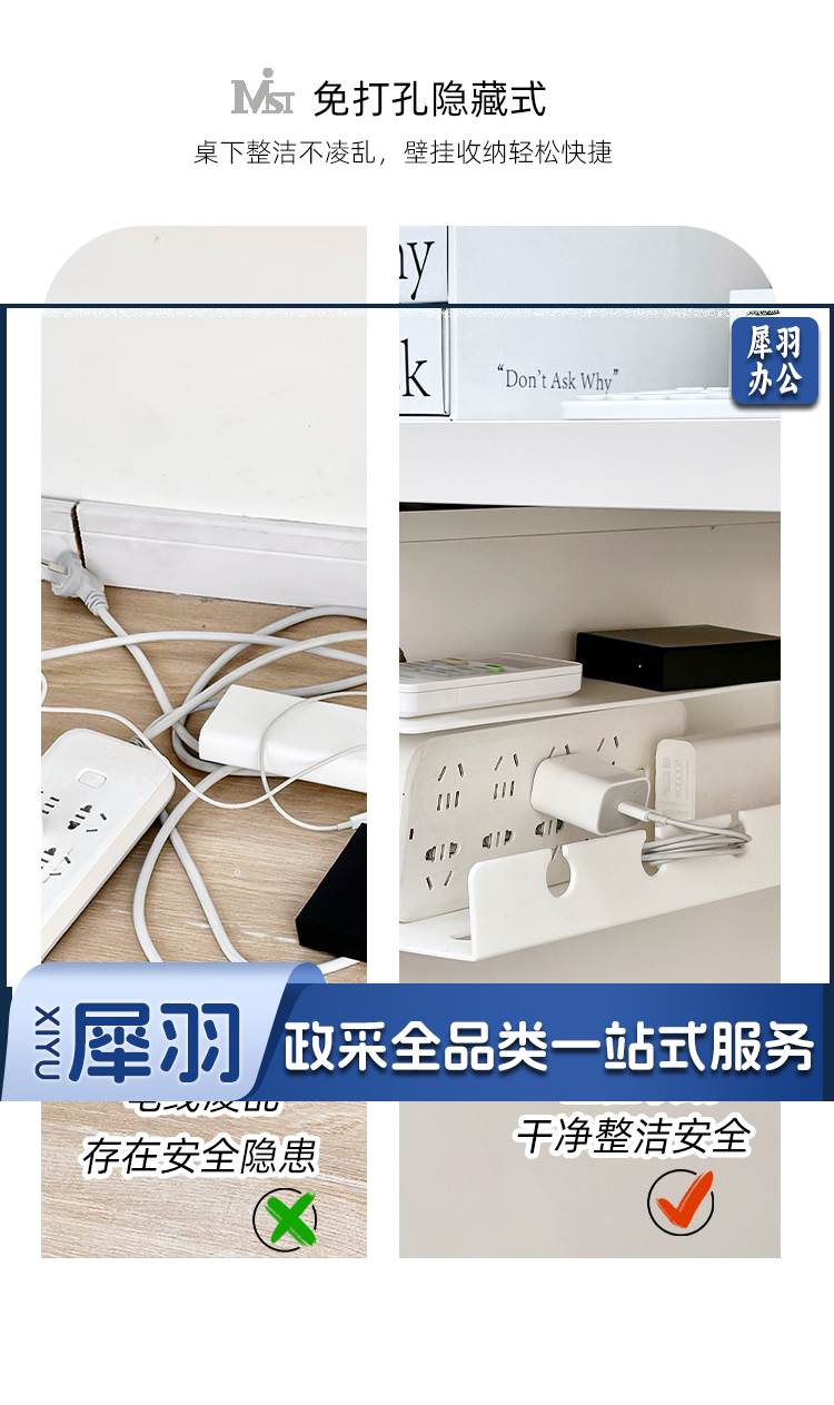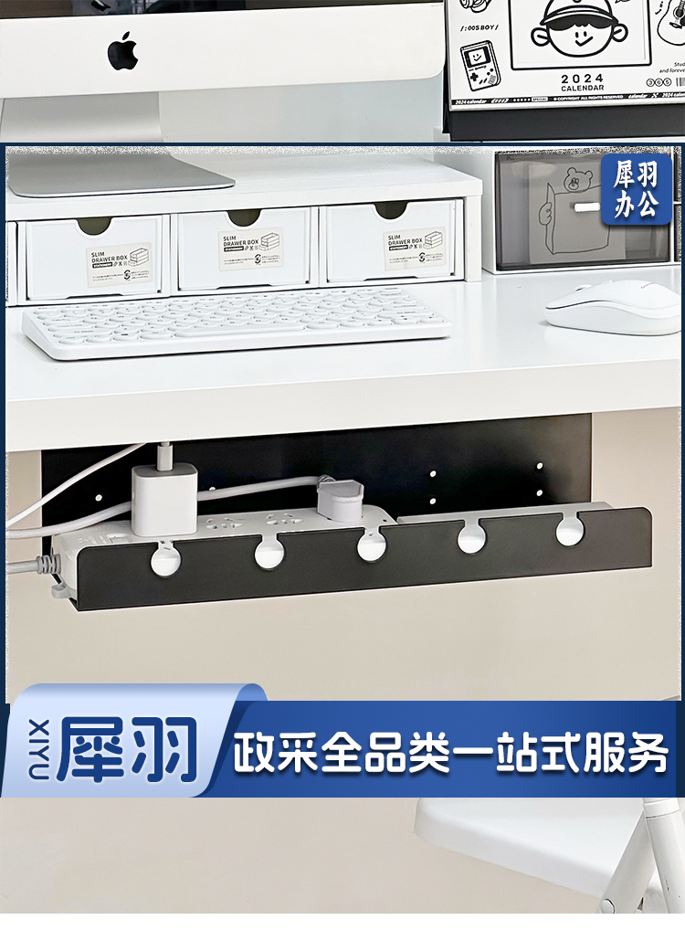 桌下理线架插座插排电线收纳固定器办公桌底电脑理线器盒槽免打孔 yykj-240524144208