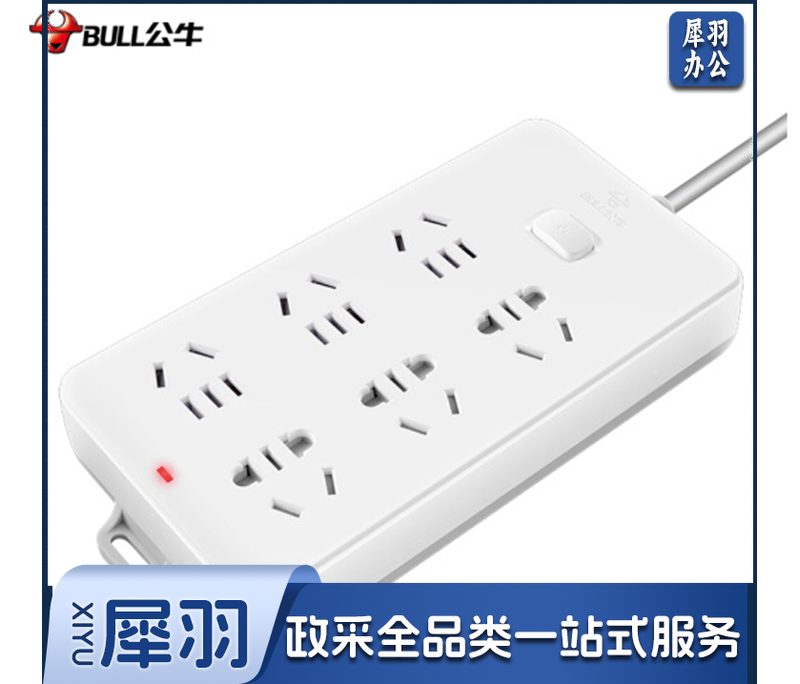 公牛(BULL) GN-109K插线板 6位总控全长3米