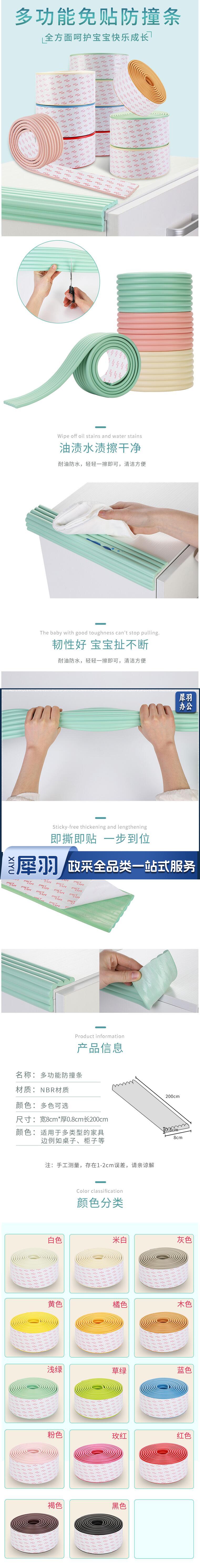 防撞条 家用墙角包边 免贴无痕保护条 海绵贴 草绿色 10米W高粘全免贴