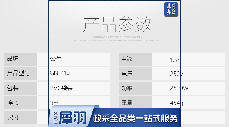 公牛(BULL)GN-410-3米 多位插座10A250V