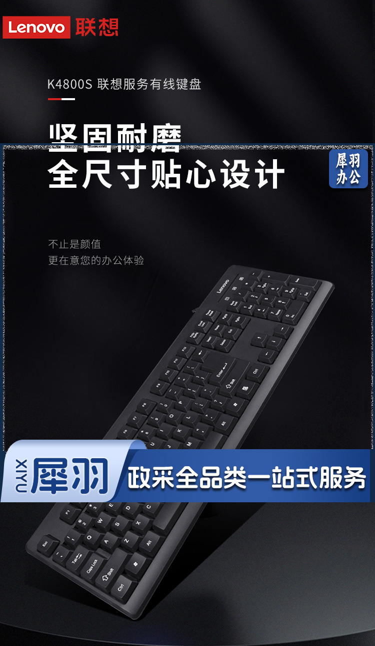 联想(lenovo)键盘 有线键盘 K4800S 电脑办公键盘 笔记本键盘黑色