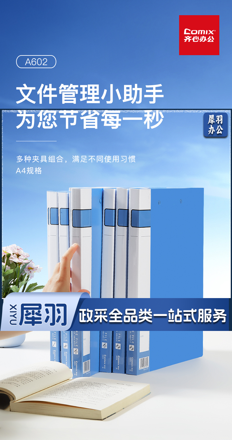 齐心 A602 办公必备轻便夹单强力夹 A4 蓝色 20只/盒,4盒/件