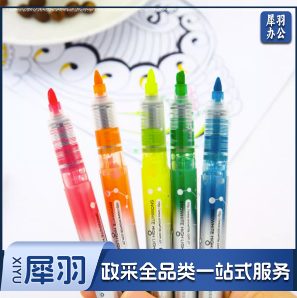 白雪(snowhite) 荧光笔标记笔用彩色粗划重点笔 彩色套装标记笔PVP-636 5支套