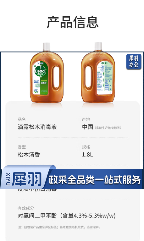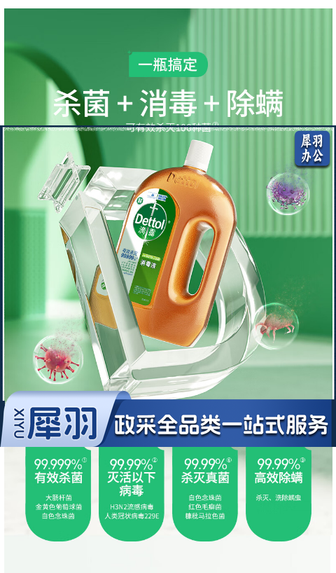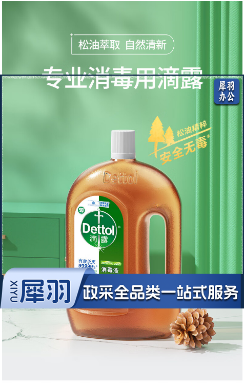 滴露(Dettol)消毒液衣物消毒水1.8L杀菌除螨 家居宠物消毒除菌 非次氯酸酒精84