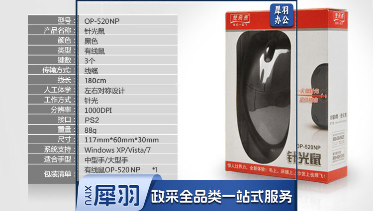 双飞燕(A4Tech)OP-520NP 有线针光鼠标 PS2接口 黑色