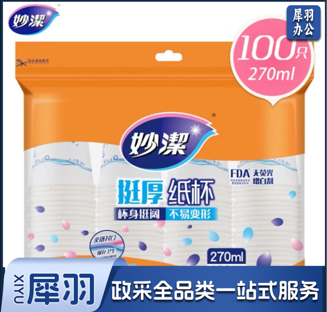 妙洁 纸杯一次性纸杯 270ml 100只装