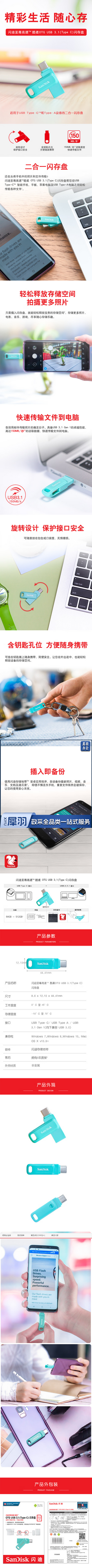 闪迪(SanDisk) 128GB Type-C USB3.1 手机U盘DDC3 薄荷绿 读速150MB/s 手机电脑平板兼容 学习办公扩容