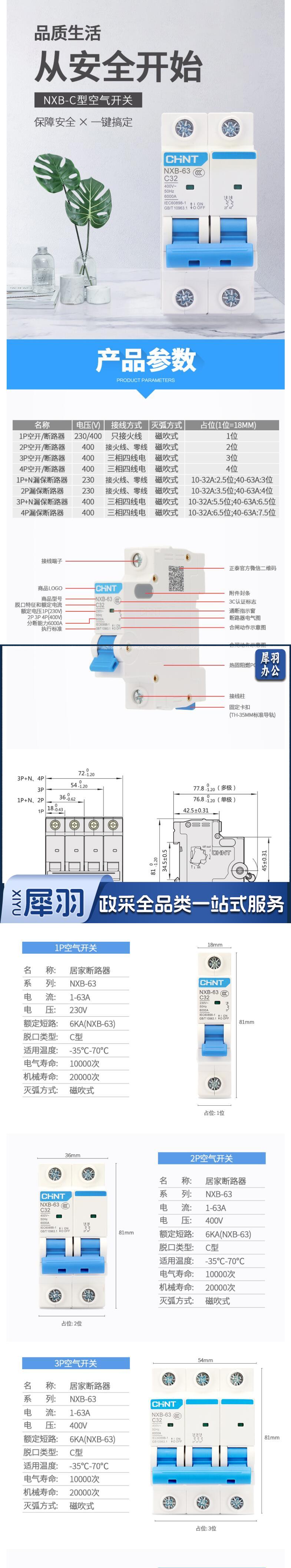 正泰 CHNT 昆仑 NXB-63 3P 32A 断路器开关