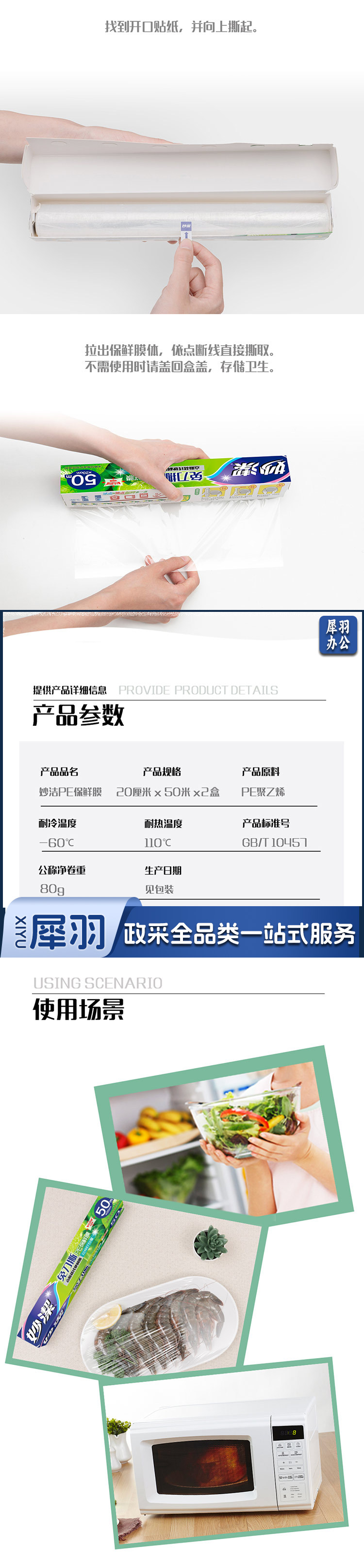 妙洁 保鲜膜 妙易撕保鲜膜盒装20CM*50米*2盒 组合装 免刀撕 点断易撕