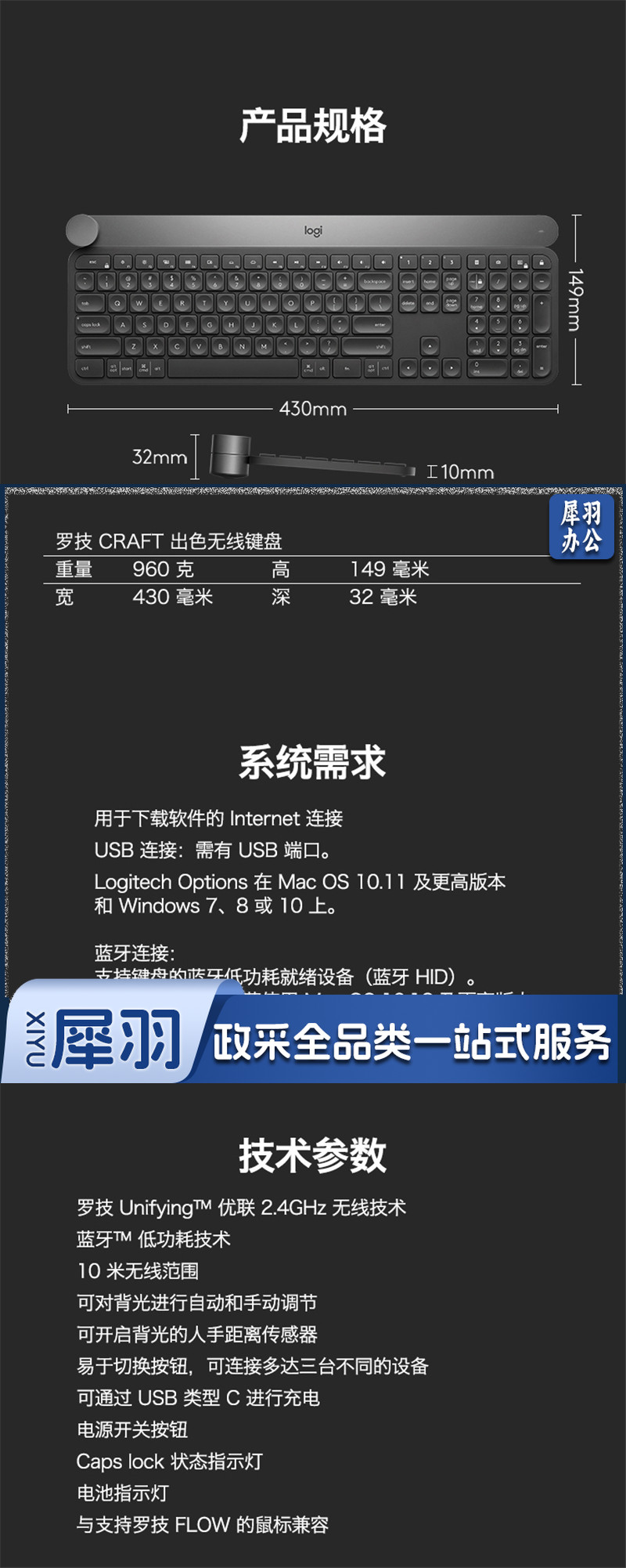 罗技(Logitech)Craft 键盘 无线蓝牙键盘 办公键盘