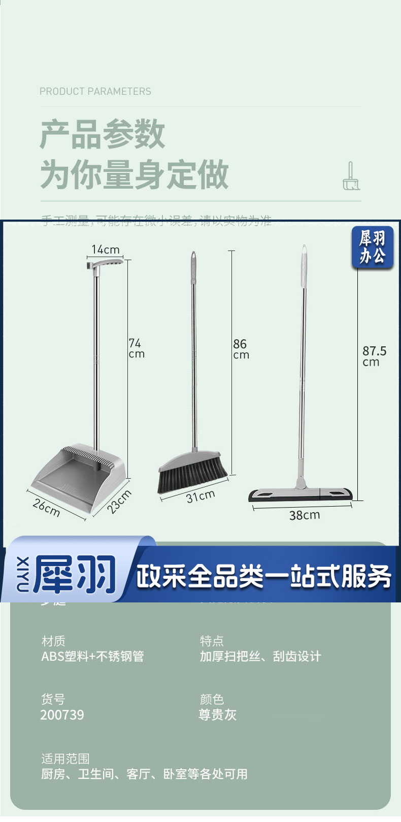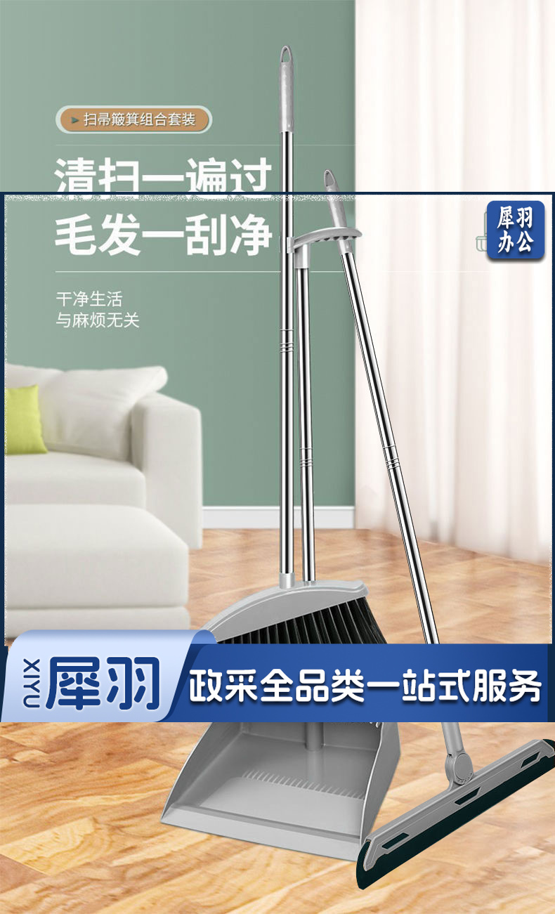 扫把套装+魔术扫把3件加长梳齿型扫地刮水扫帚簸箕组合灰200739