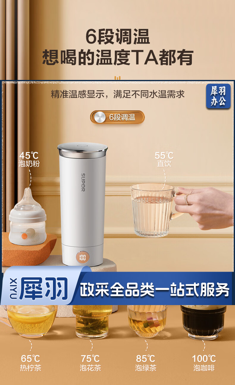 苏泊尔(SUPOR)SW-03T01A 电热水杯 随行烧水杯 便携式保温恒温烧水壶开水壶电水壶 旅行养生电热水壶