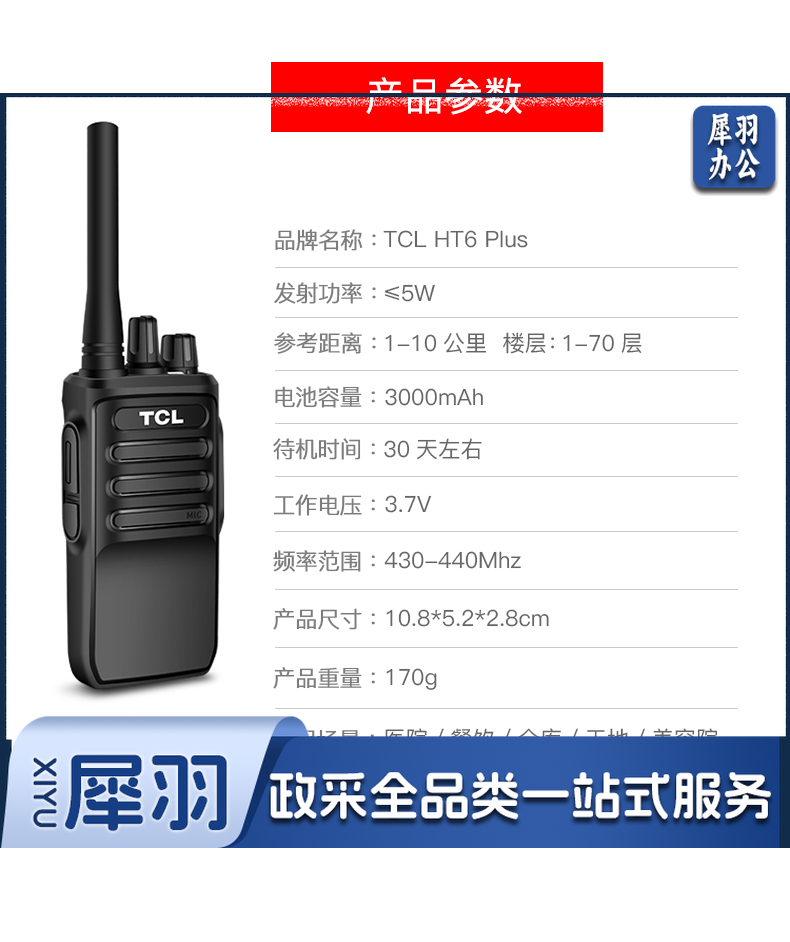 TCL【双台装】对讲机HT6 plus 超长待机 专业大功率远距离户外无线手台商务办公民用手持