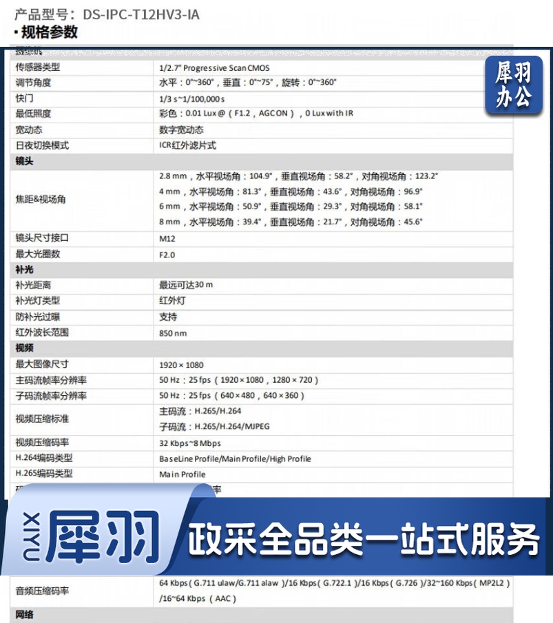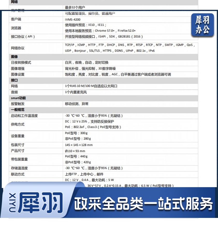 海康威视 监控摄像头200万红外PoE海螺摄像机内置麦克风|红外补光最远可达30米|强光抑制|IP66