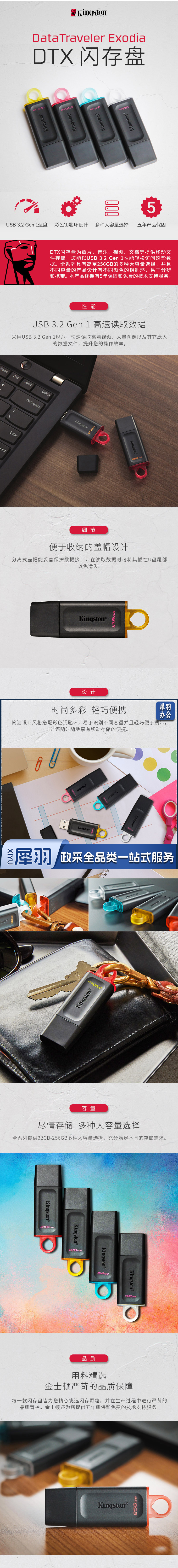 金士顿(Kingston) DTX 64GB USB3.2 Gen 1 U盘时尚设计 轻巧便携