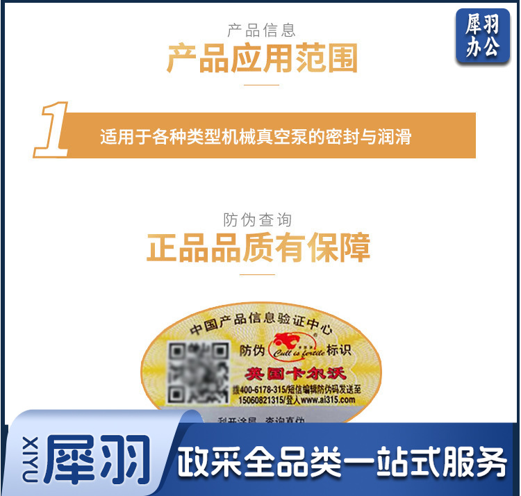 卡尔沃全合成100号真空泵油 高速真空泵油旋片式真空封口机包装机空调高性能润滑油100# 四季通用4L