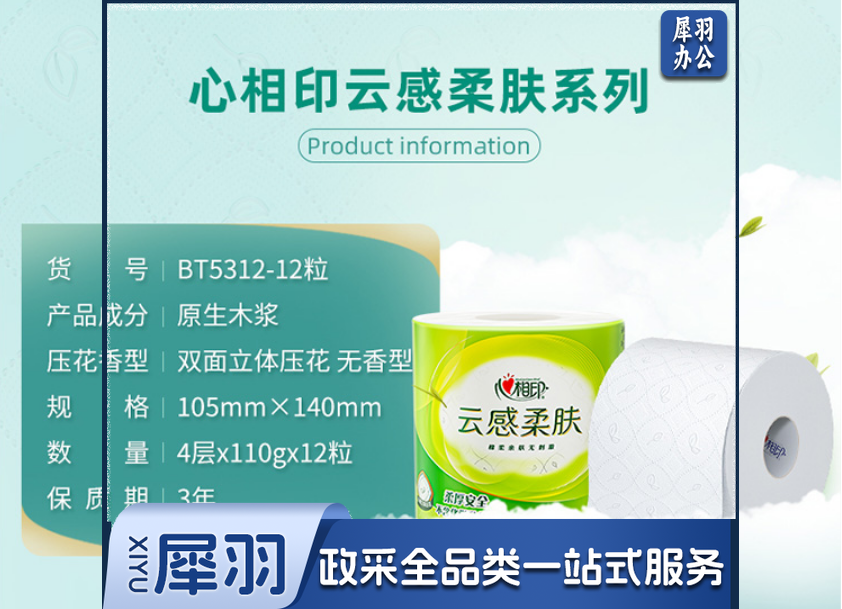 心相印卷纸 云感柔肤BT5312 4层110g*12卷/提卫生纸巾twkj-230830131811