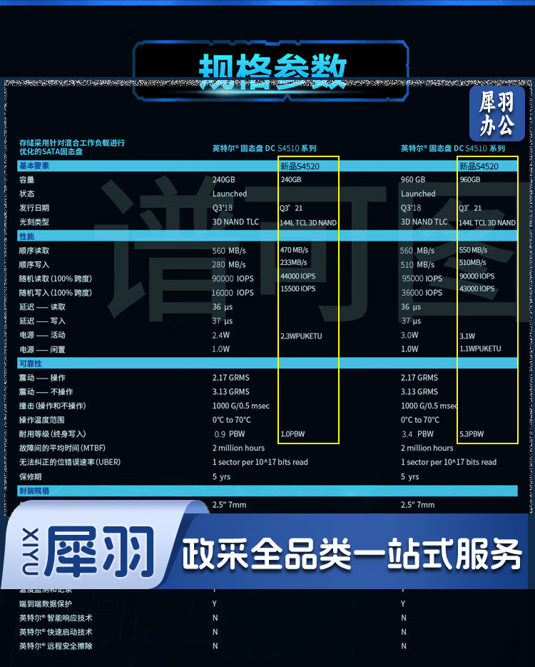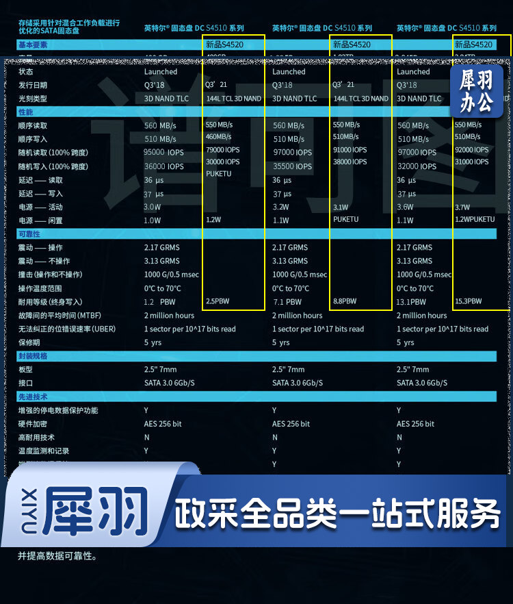 英特尔(Intel)S4520 1.92T 数据中心企业级固态硬盘SATA3接口