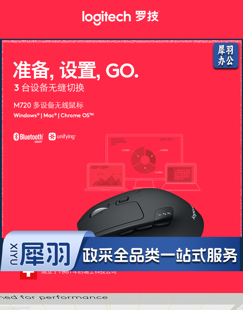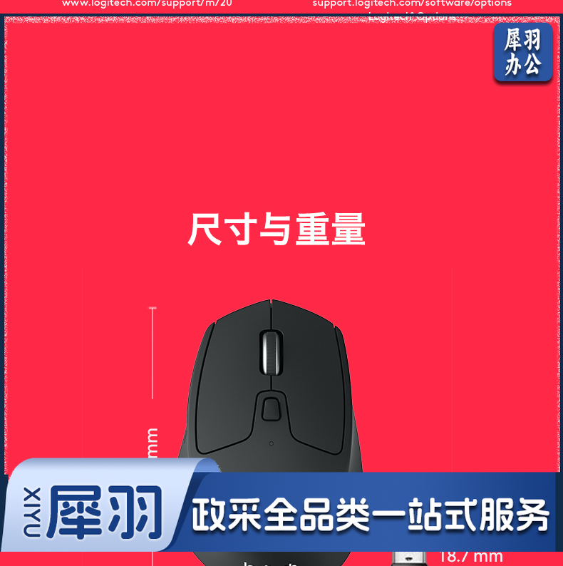 罗技(Logitech)M720 蓝牙优联双模无线鼠标 蓝牙鼠标侧键大手鼠标舒适