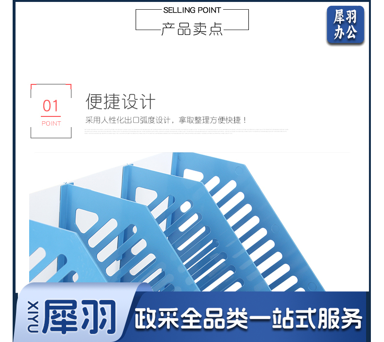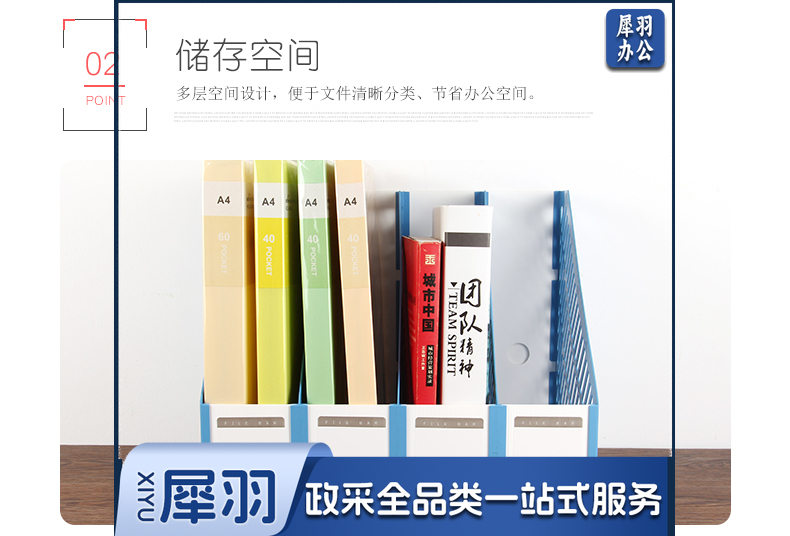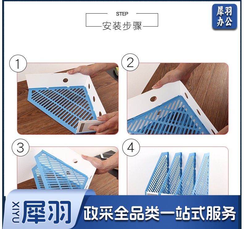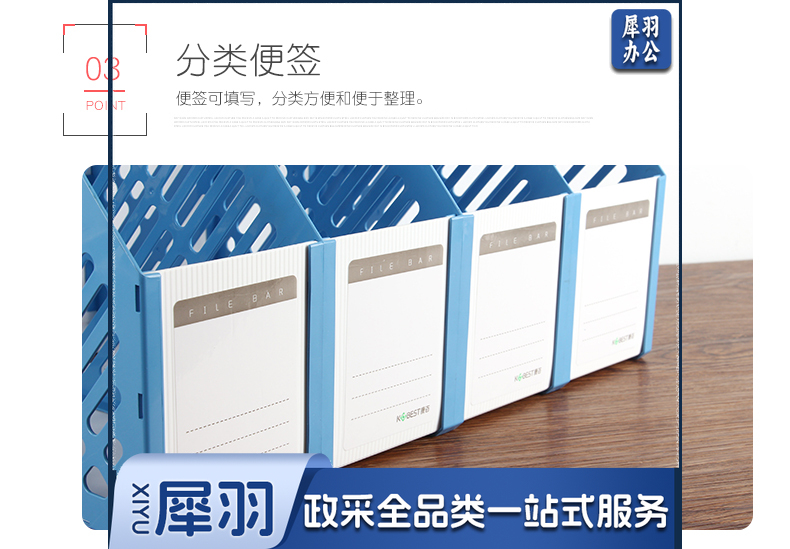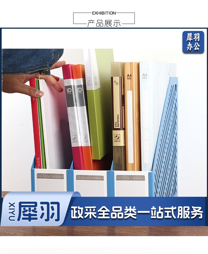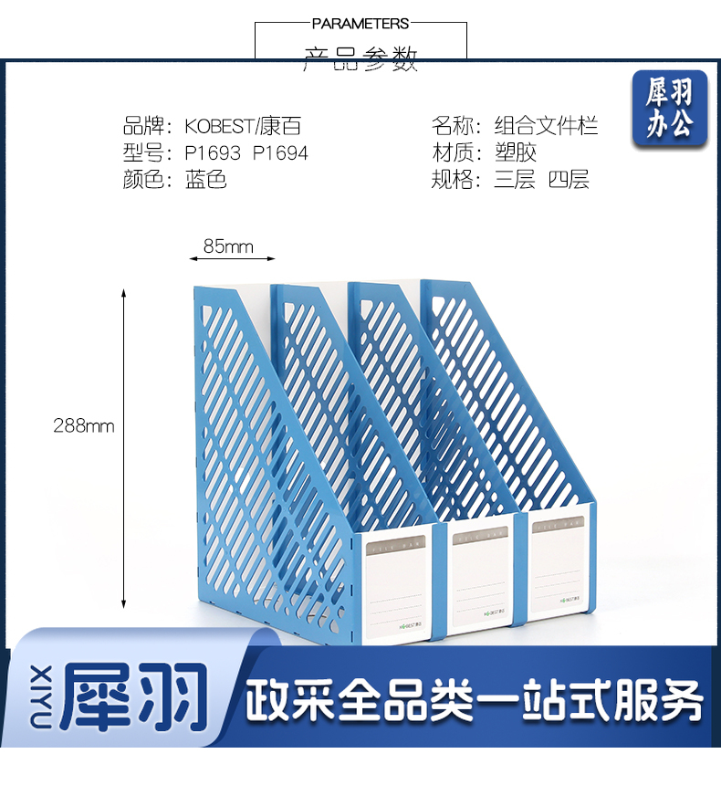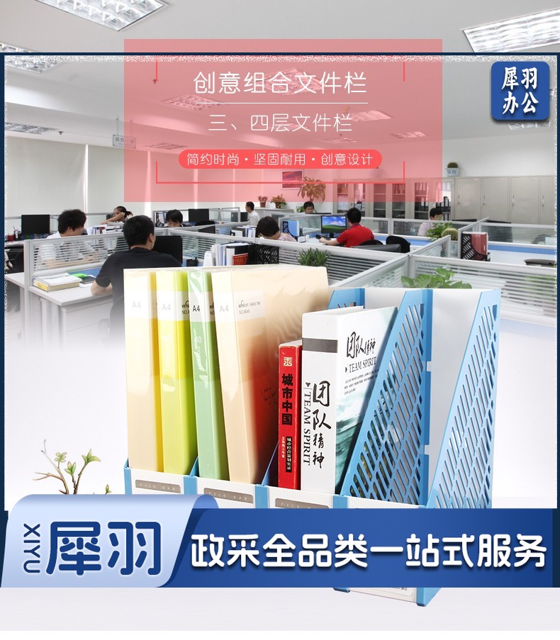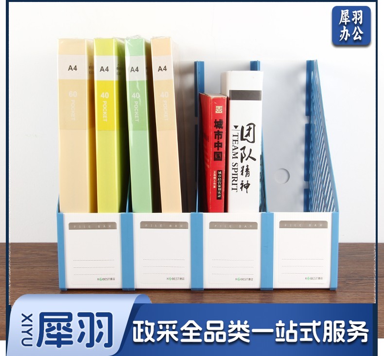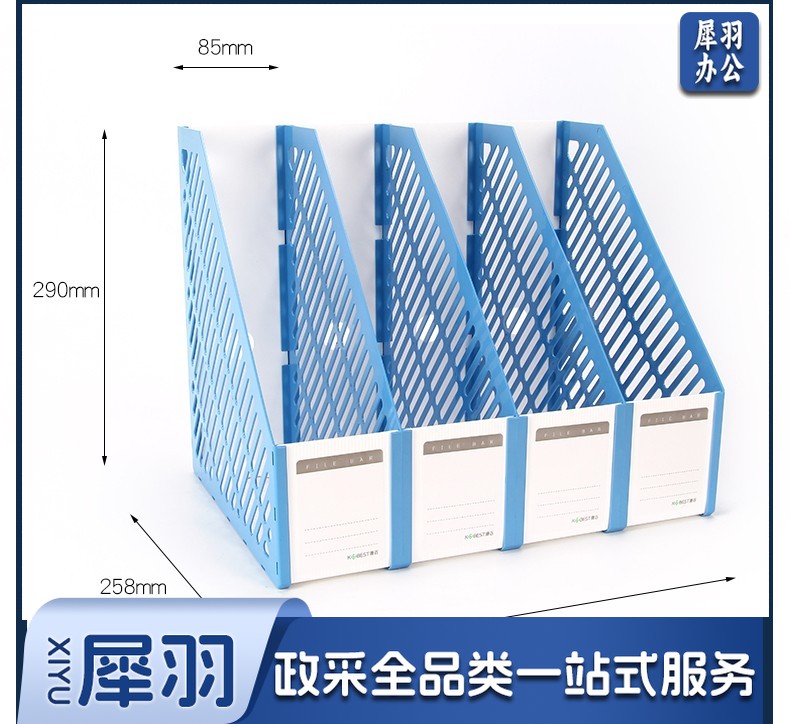 康百(KOBEST)组合文件收纳盒三栏文件架办公桌上文件框四联资料架学生书架收纳置物架档案架 三联文件栏-蓝色-P1693