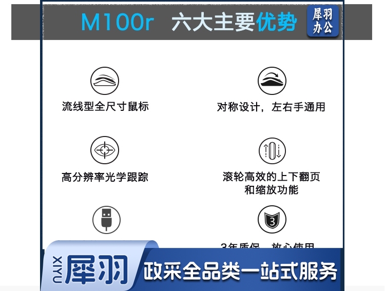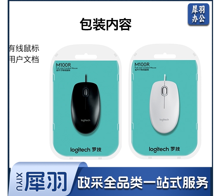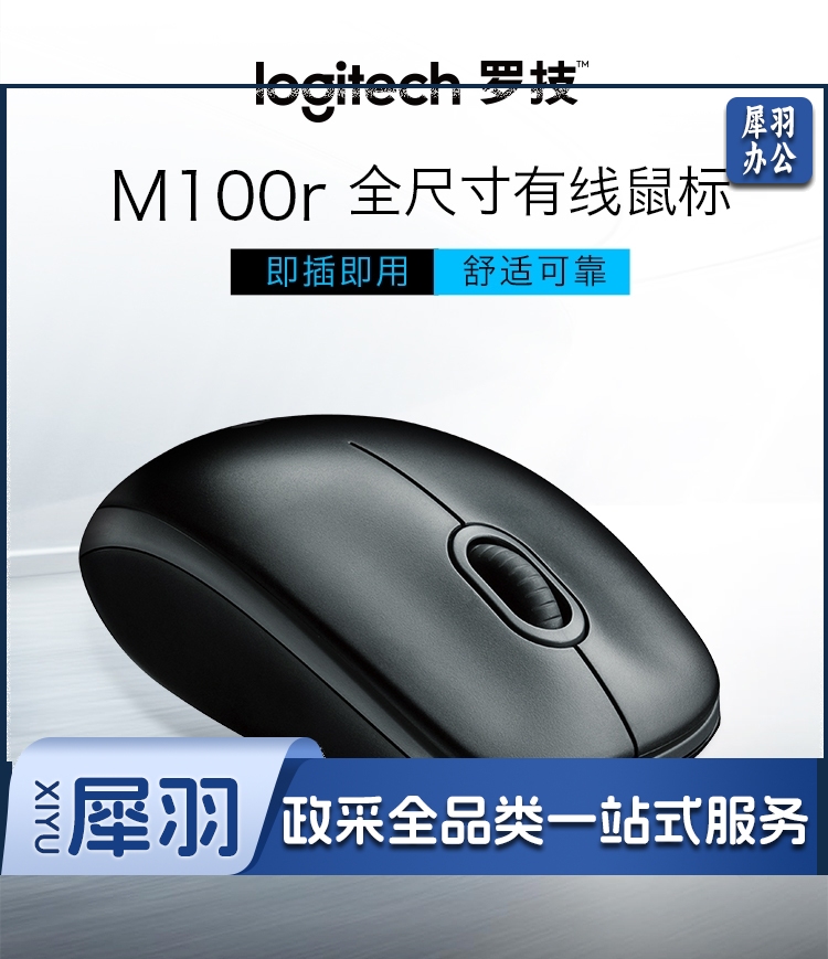 罗技(Logitech)M100r 鼠标 有线鼠标 办公鼠标 对称鼠标 大手鼠标 黑色