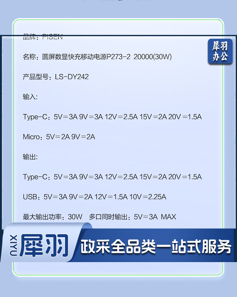 品胜20000毫安30W双向快充充电宝大容量移动电源27WPD20W数显便携适用苹果16华为mate xt小米