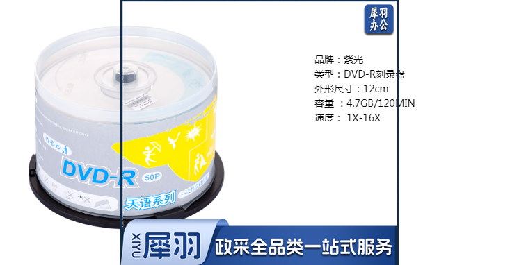 紫光(UNIS)天语DVD-R光盘/刻录盘 一盒装 TJHX06201220091150
