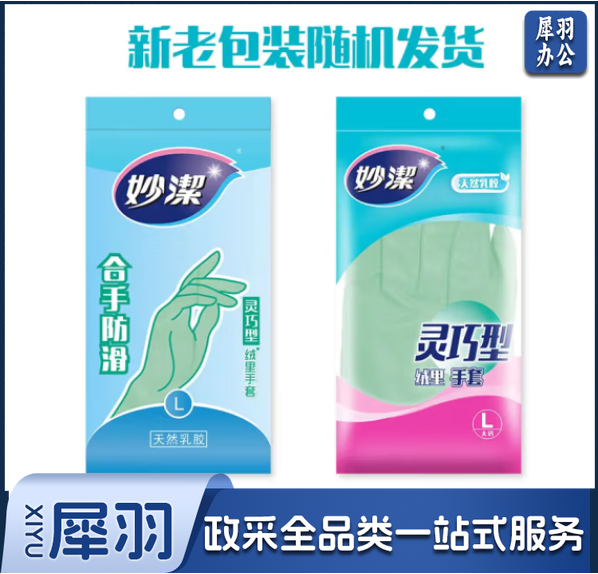 妙洁 清洁洗衣洗碗防水橡胶手套 灵巧型绒里手套 大号