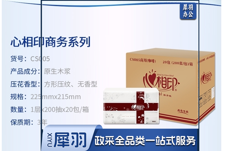 心相印 CS005 擦手纸 225mm*215mm 三折 200抽/包 20包/箱(箱)