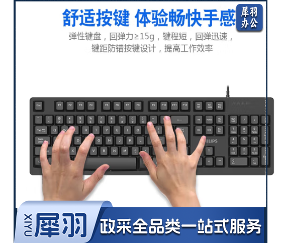 飞利浦(PHILIPS)SPK6234有线键盘 商务办公键盘 笔记本电脑台式机外接键盘 USB键盘 全尺寸 黑色
