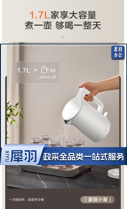 京东京造304食品级烧水壶1.7L 家用热水壶电热水壶 速热一体无缝内胆304食品级不锈钢自动断电电水壶