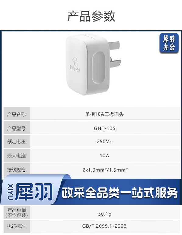 公牛(BULL)插头二三脚插头3脚空调插 10a插头2脚电源插头插座/无线/自行接线 GNT-10S三脚10A插头