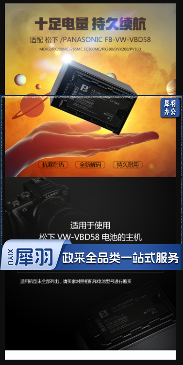 沣标(FB)VBD58 锂电池 适用松下MDH3 PX298MC PX285MC UX180摄相机 加厚版VBD98(10400mAh)