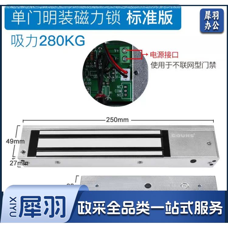 高优S280C门禁磁力锁280kg单双开玻璃门防火门12V磁吸锁电控锁 CU-280C单门两线