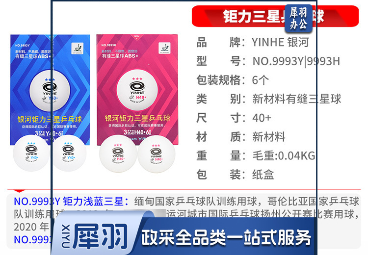 银河 三星乒乓球Y40+新材料钜力有缝球 3星兵乓球比赛用球 白色12只装