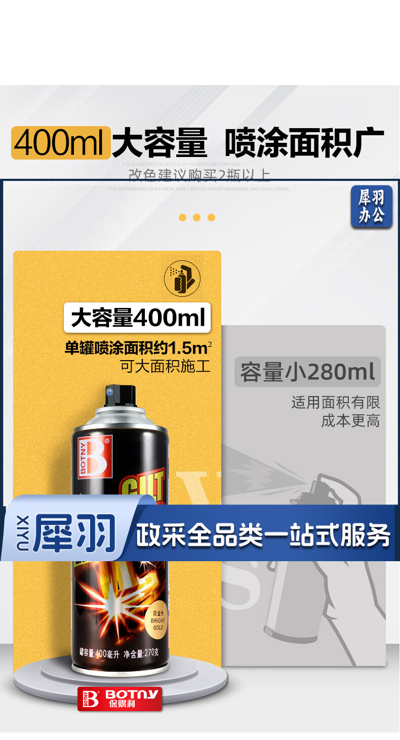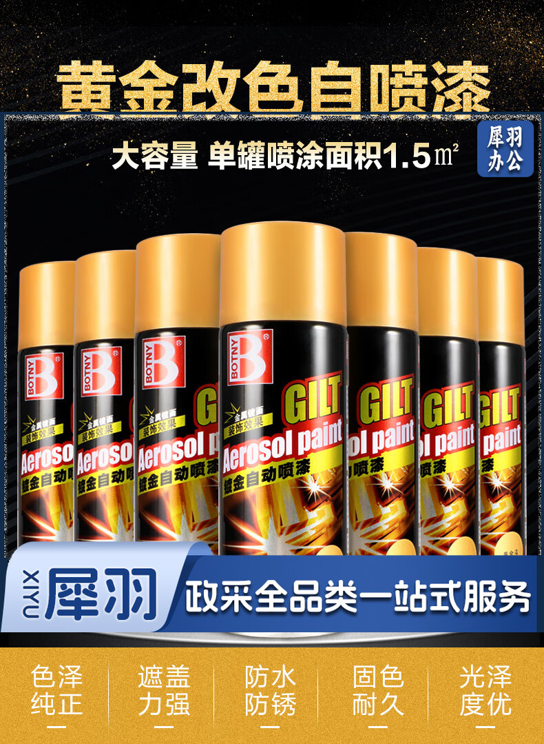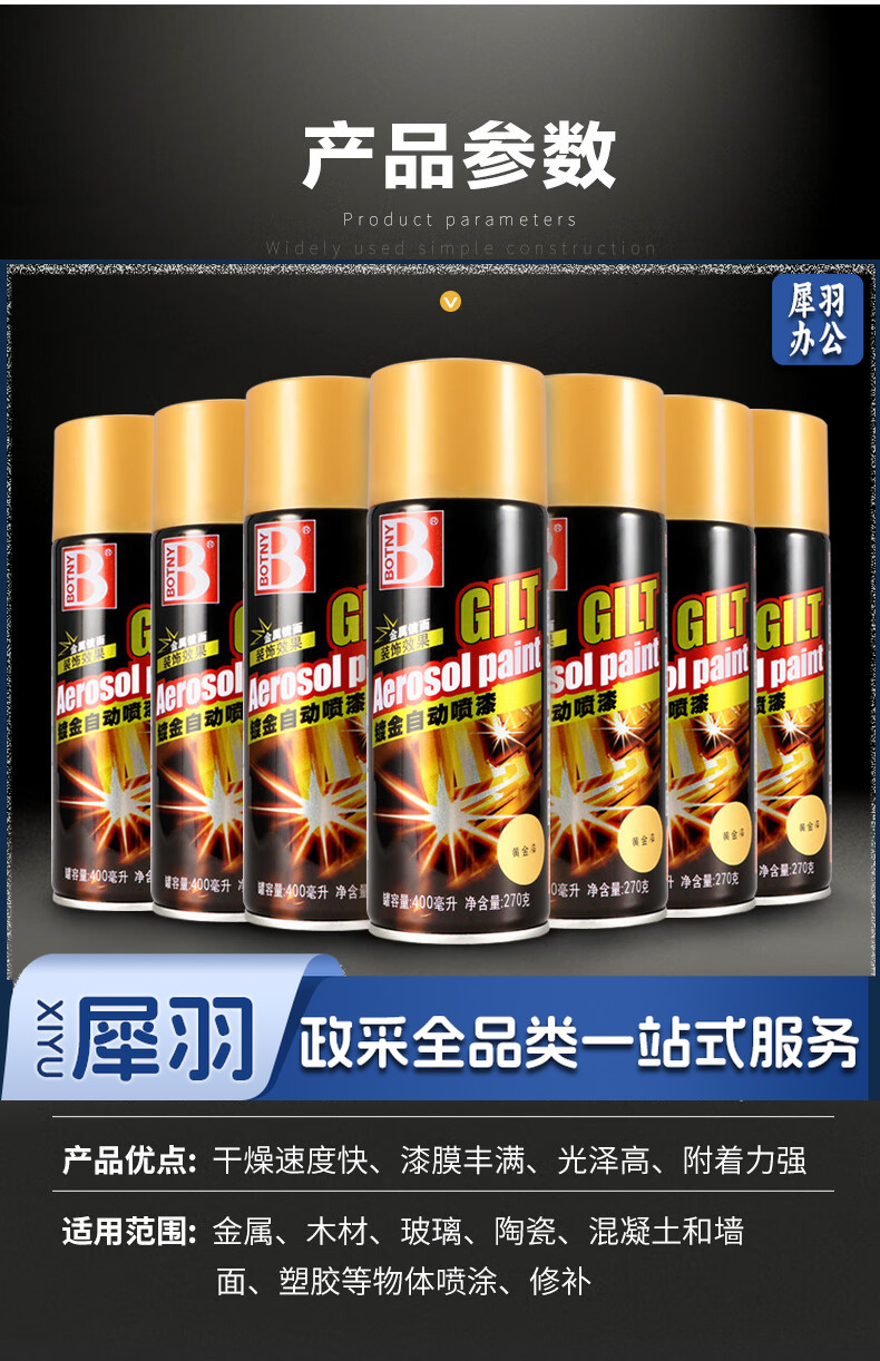 保赐利/BOTNY 自喷漆 工业品喷漆改色 金属防锈油漆 自动喷漆 黄金金属自喷漆 黄金色 270g/400ml/瓶