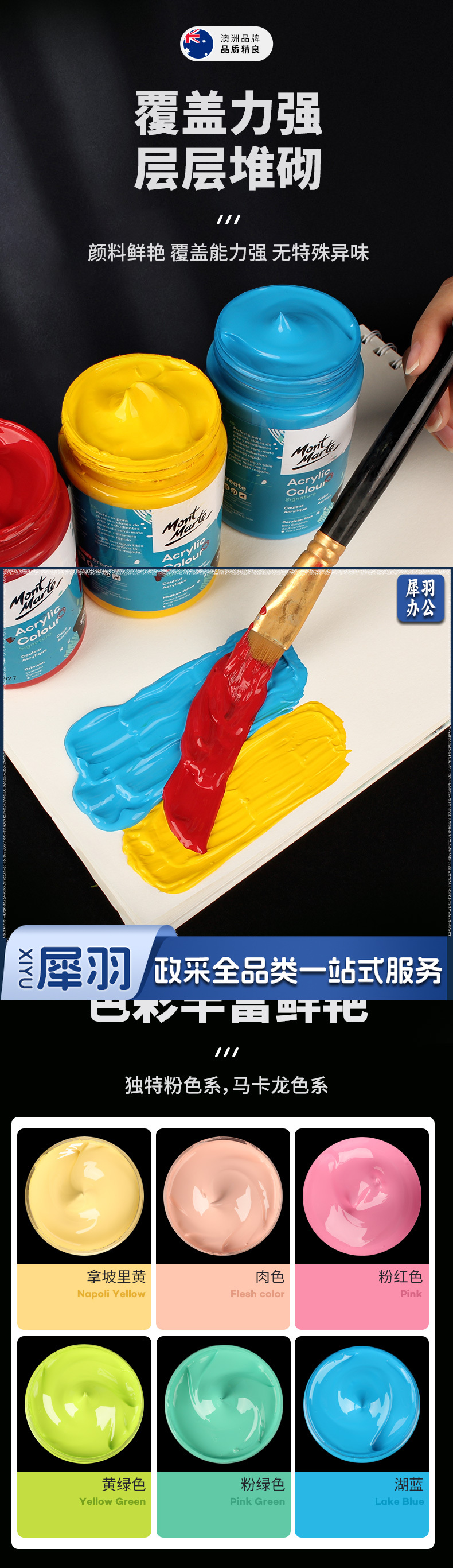 蒙玛特(Mont Marte) 丙烯颜料套装 手绘涂鸦墙绘t恤diy丙烯画24色 钛白 500ml